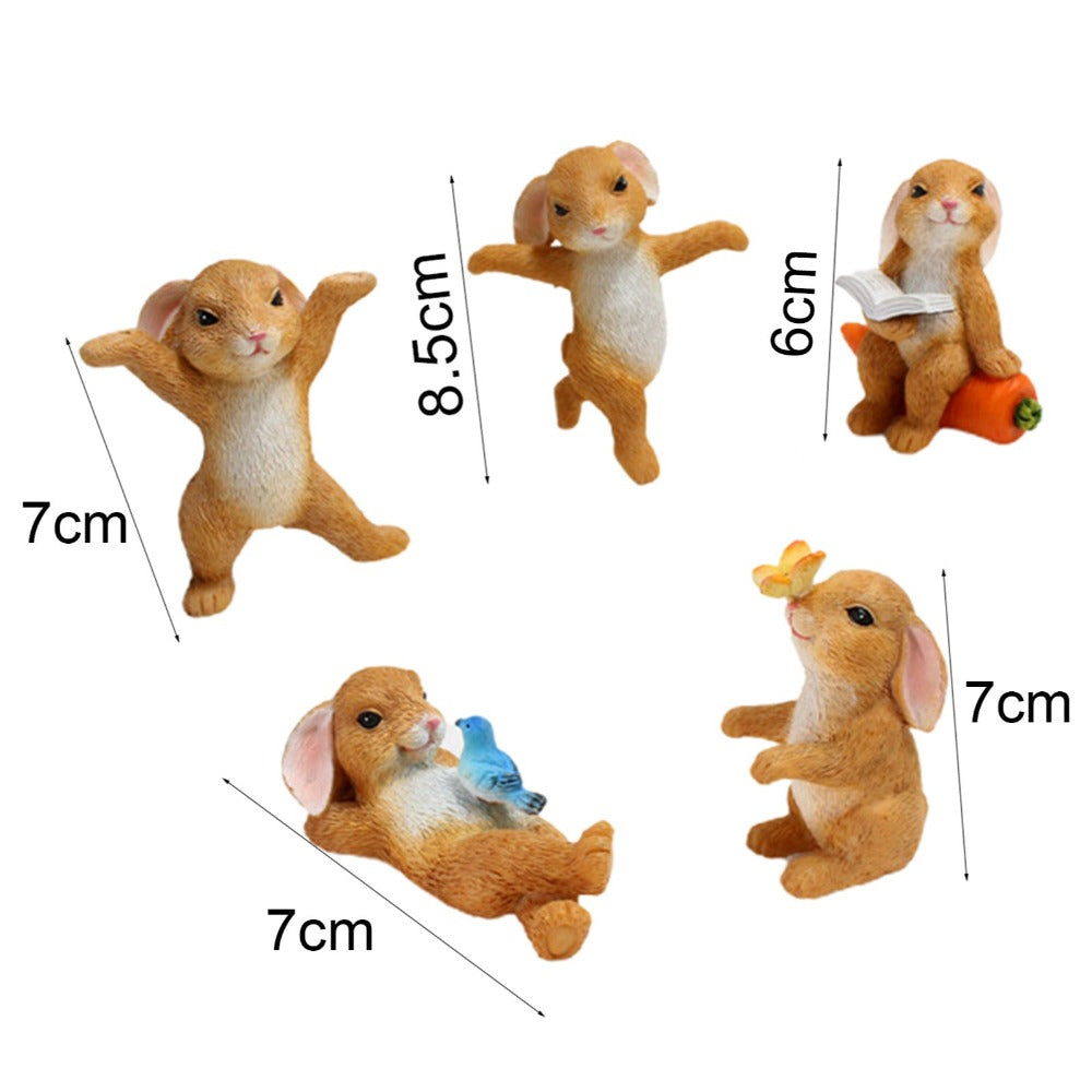 5Pcs Mini Easter Bunny Rabbit Resin Figurines Ornaments & Statues