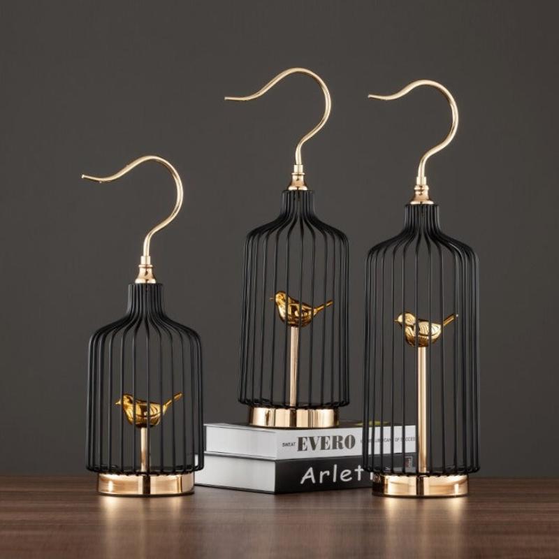 52 Centimetre Golden Handle Birdcage Tabletop Home Decor Sculptures Figurines Sculptures & Figurines