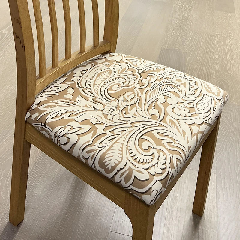 Chair Cover Beige Khaki Vine Leaf Print Stretch Seat For Dining Kitchen Slipcovers