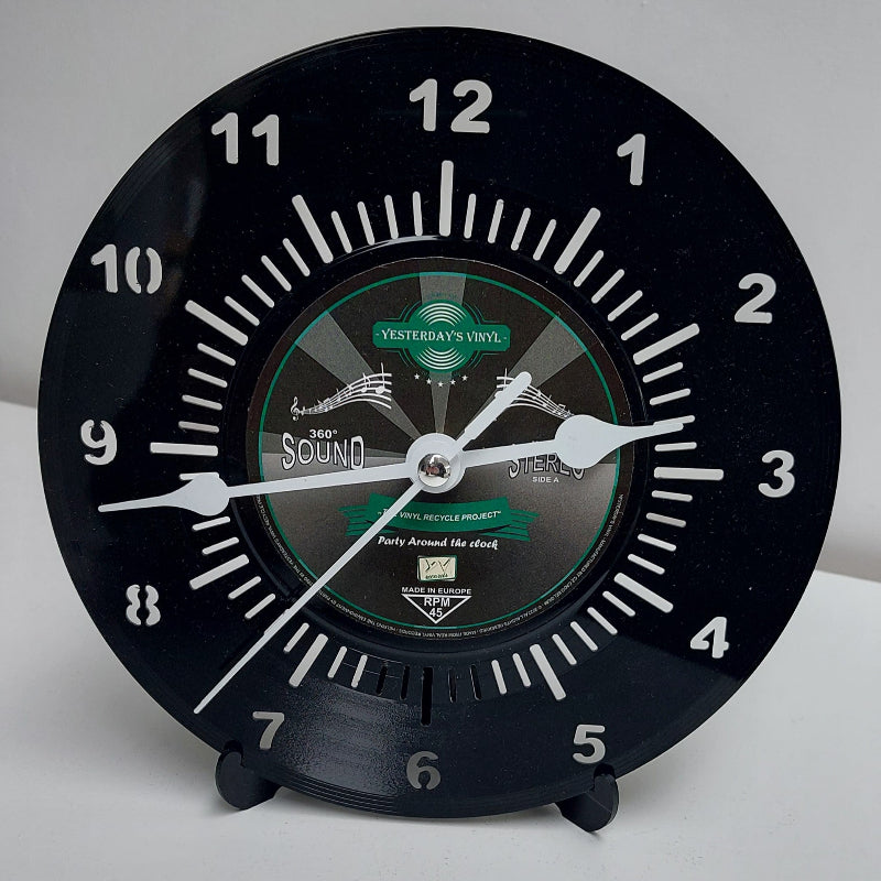 • 1 X Vinyl Desk Clock Black Seventeen Point Five Centimetres Recycled Material