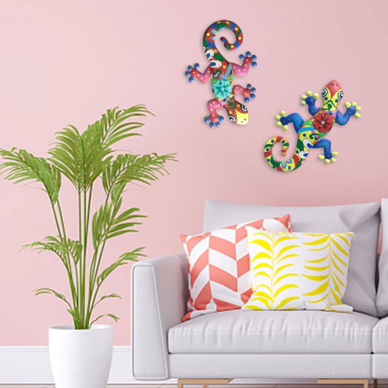 2Pcs Metal Gecko Art Craft Sculptures Lizard For Outdoor Backyard Porch Lawn Fence Garden Wall Decor Wall Hangings
