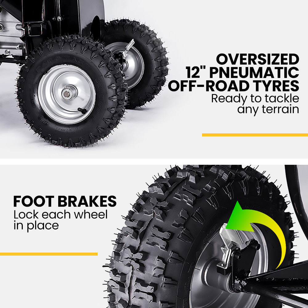 • Oversized all-terrain 12-inch pneumatic wheels for mobility