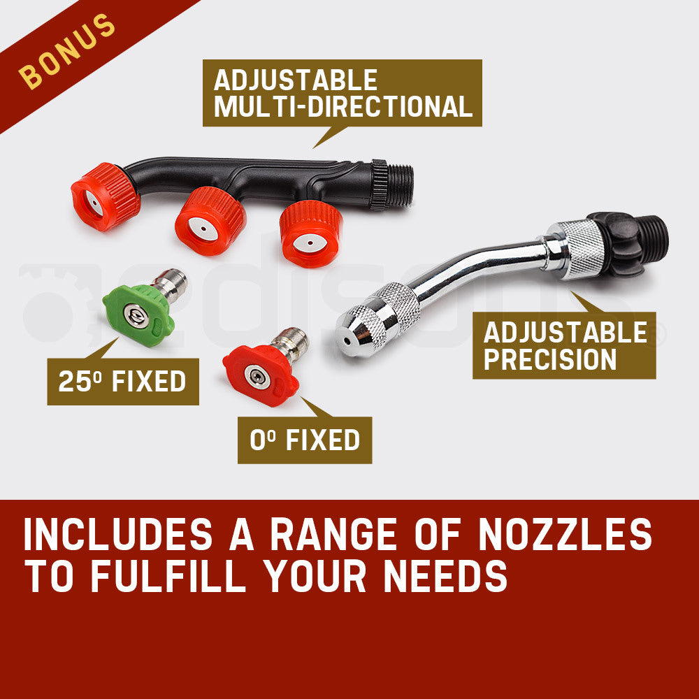 The Mt8 Caters To All Of Your Spraying Needs With The 4 Included Nozzles. The Fixed Degree Nozzles 0° And 25° Apply An Even Spraying Pressure While The Nozzles Are Perfect For On The Fly Pressure Adjustments. The Triple Nozzle Head Is The Perfect Option For Maximising Coverage And Efficiency. The Gun And Lance Feature Brass Connections To Resist Corrosion And Can Be Stowed In The Designated Gun Holder.