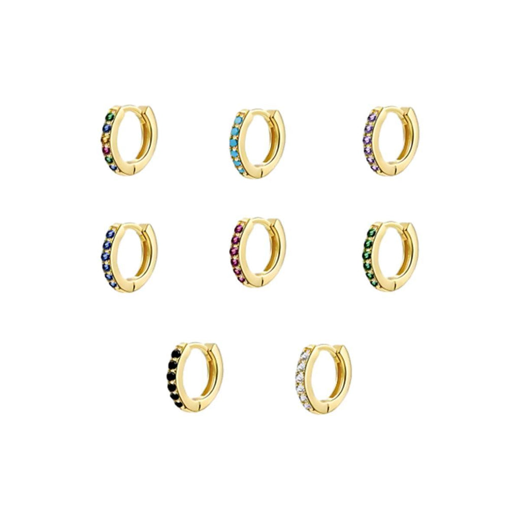 925 Sterling Silver Gold Rings Plated Cubic Crystal Cuff Huggie Hoop Au Black Earrings