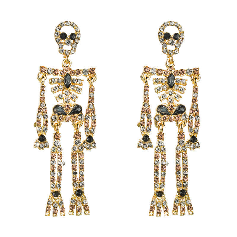 American Style Skull Skeleton Rhinestone Drop Earrings