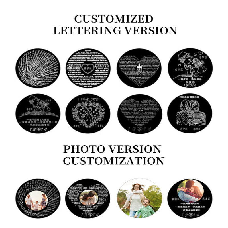 This Couple Bracelet Features An Engraved High-Definition Colour Photo Projection And Includes 100 Different Voices Saying I Love You. The Design Incorporates Geometric Elements And Is Crafted From Environmentally Friendly Copper Suitable For Couples.