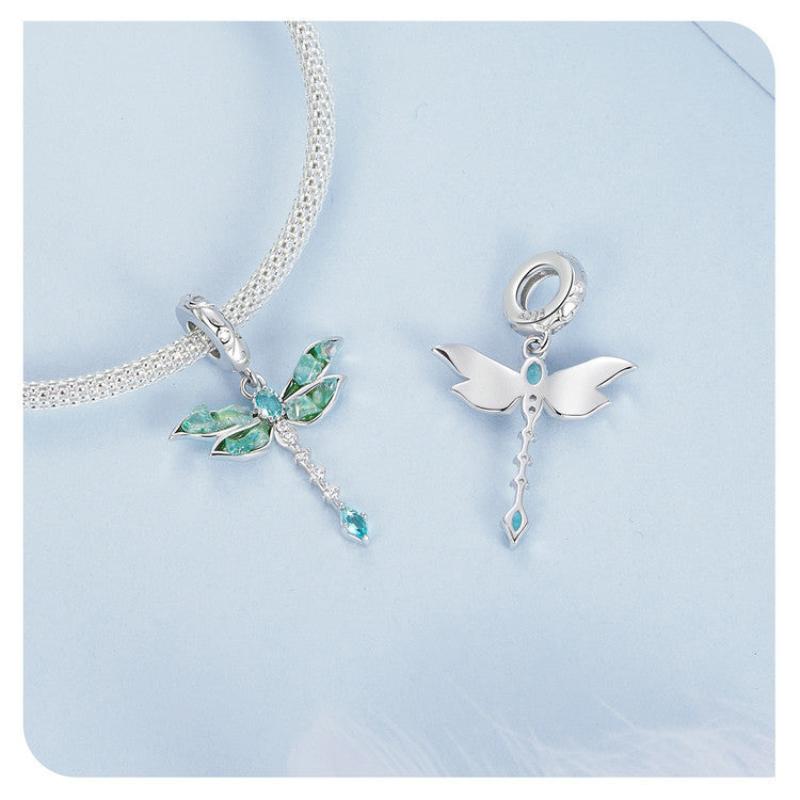 - Name: Green Dragonfly Pendant -925 Silver Beads
