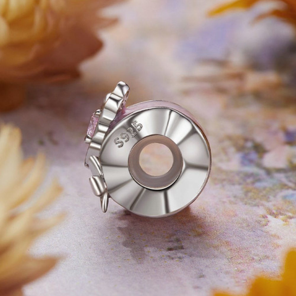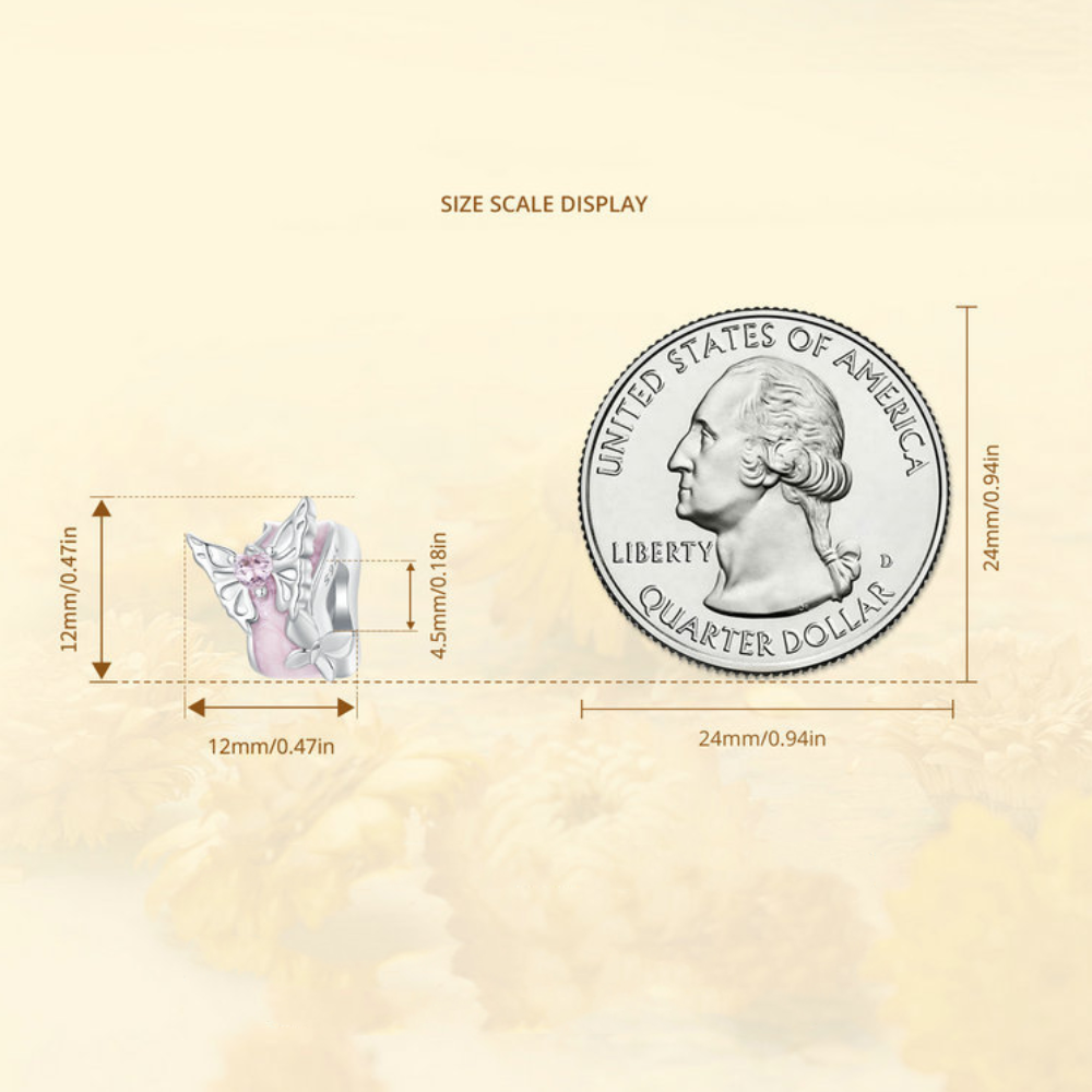 - 1 X Silver Charm Pink Butterfly Diy Silicone Positioning Bracelet With Separated Beads Romantic Spring Day S925 Pure Silver Beads Loose Beads
