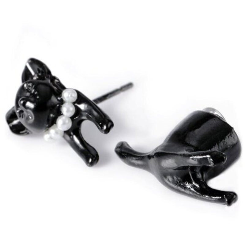 Veile Studios Artificial Pearl Cat Shape Design Earring Black Earrings