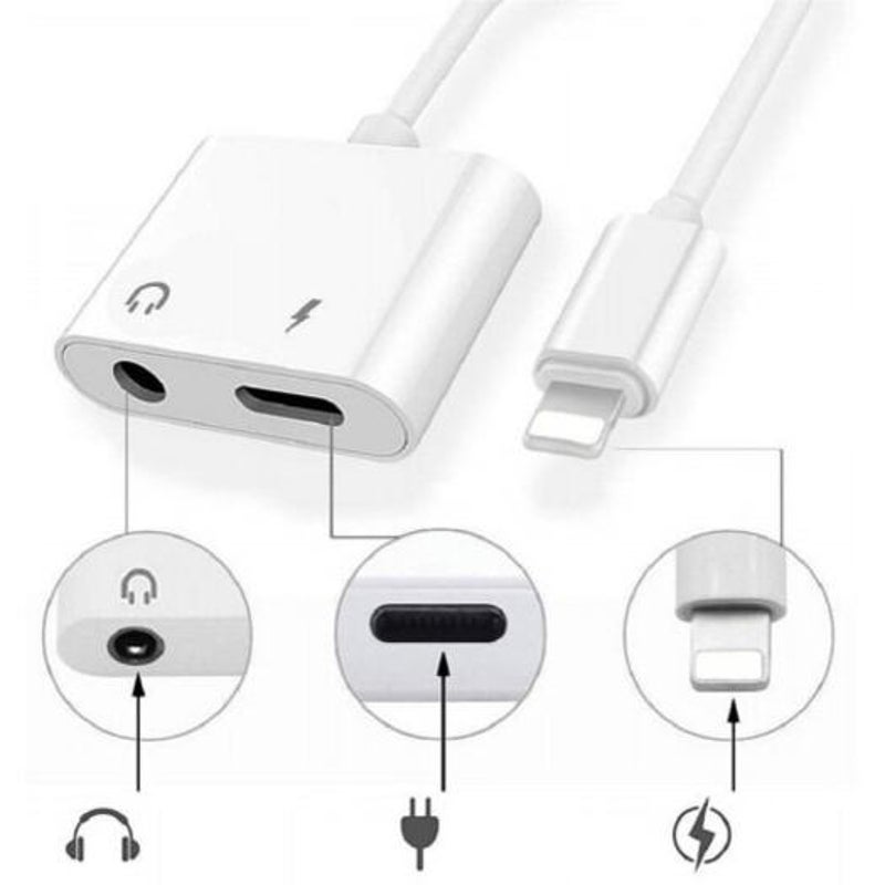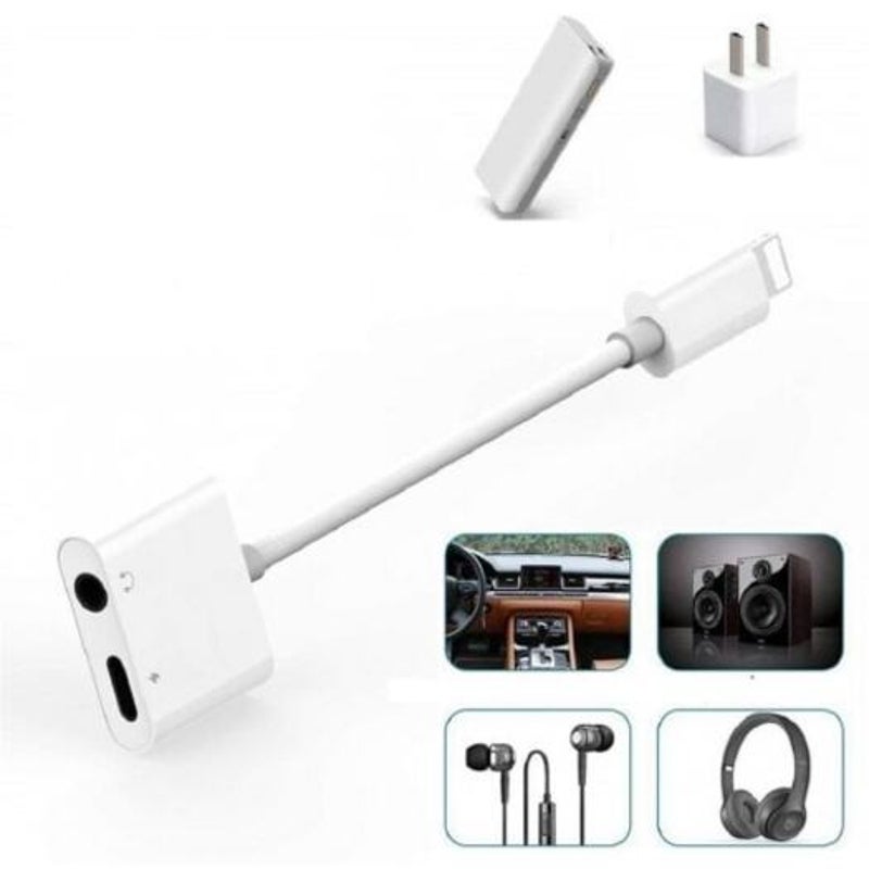 2 In1 3.5Mm Headphone Audio Jack Charger Adapter For Iphone X / 8 Plus 7 White Cables & Adapters