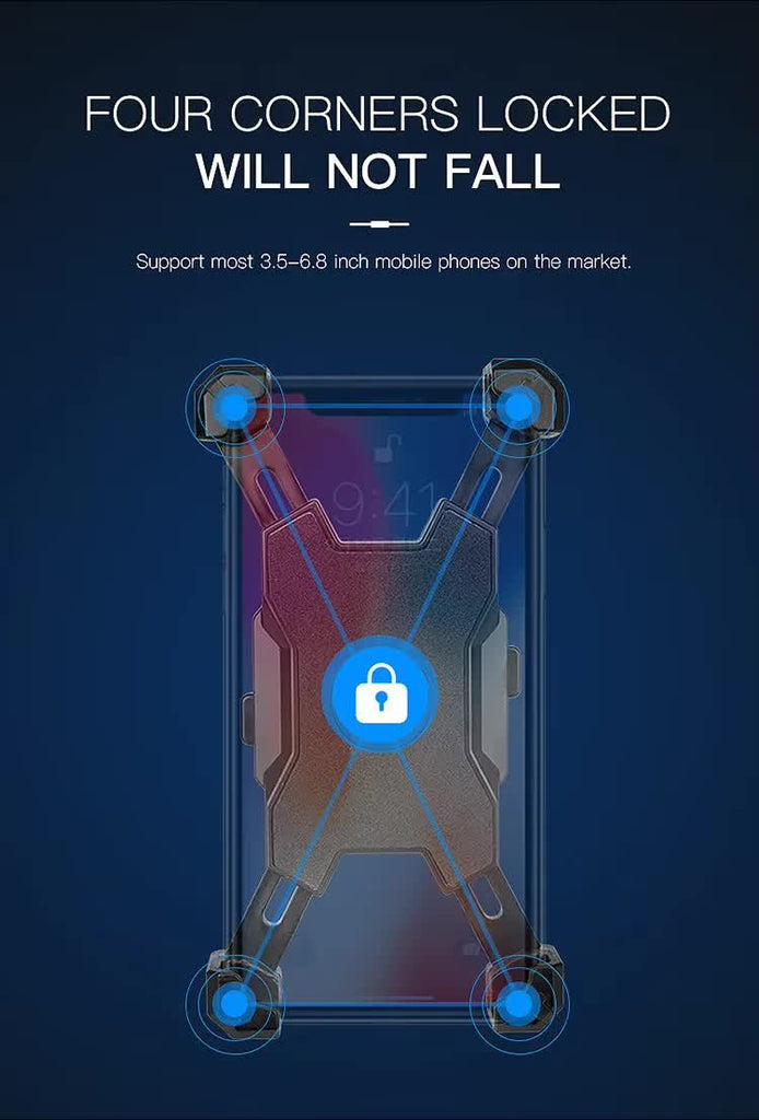 • Ultra-Secure Four-Corner Grip: Mechanical Locking Arms Hold Your Phone Firmly In Place Even On Rough Trails.