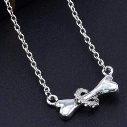 Veile Studios Necklaces Simple Diamond Studded Dog Bone Silver Necklaces & Pendants