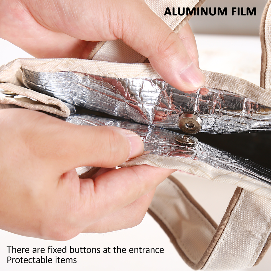 - Insulated Aluminum Film Lining: Fully Thickened Inner Lining Helps Maintain Hot Or Cold Temperatures While Being Waterproof Oil-Proof And Easy To Clean.