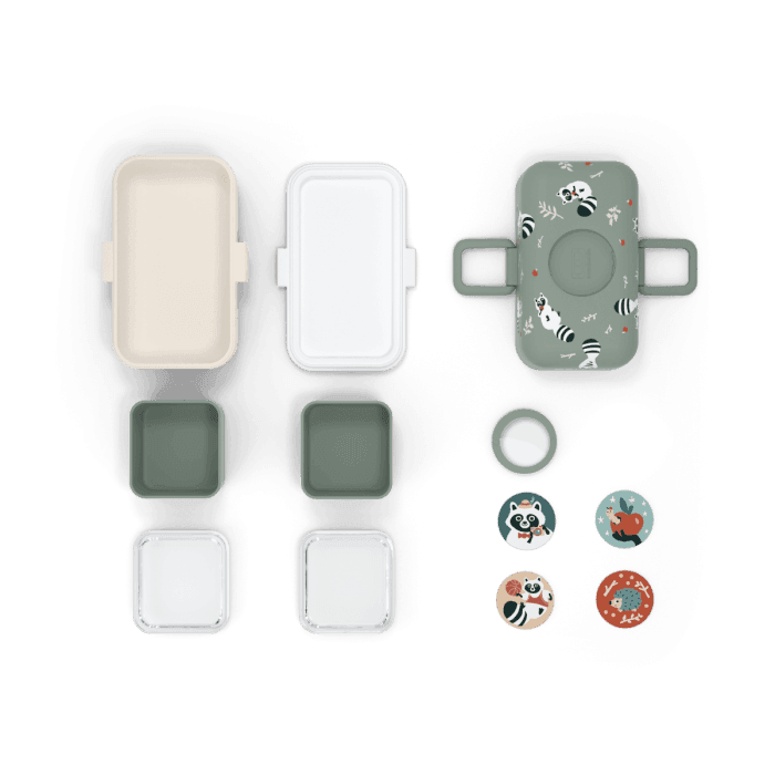 Monbento Tresor Graphic Kids's Bento Box Green Raccoon Lunchboxes & Bags