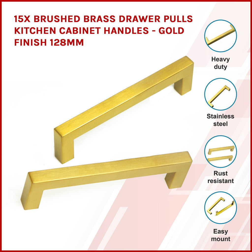 15X Brushed Brass Drawer Pulls Kitchen Cabinet Handles Gold Finish 128Mm Kitchen Cabinet Doors And Fronts