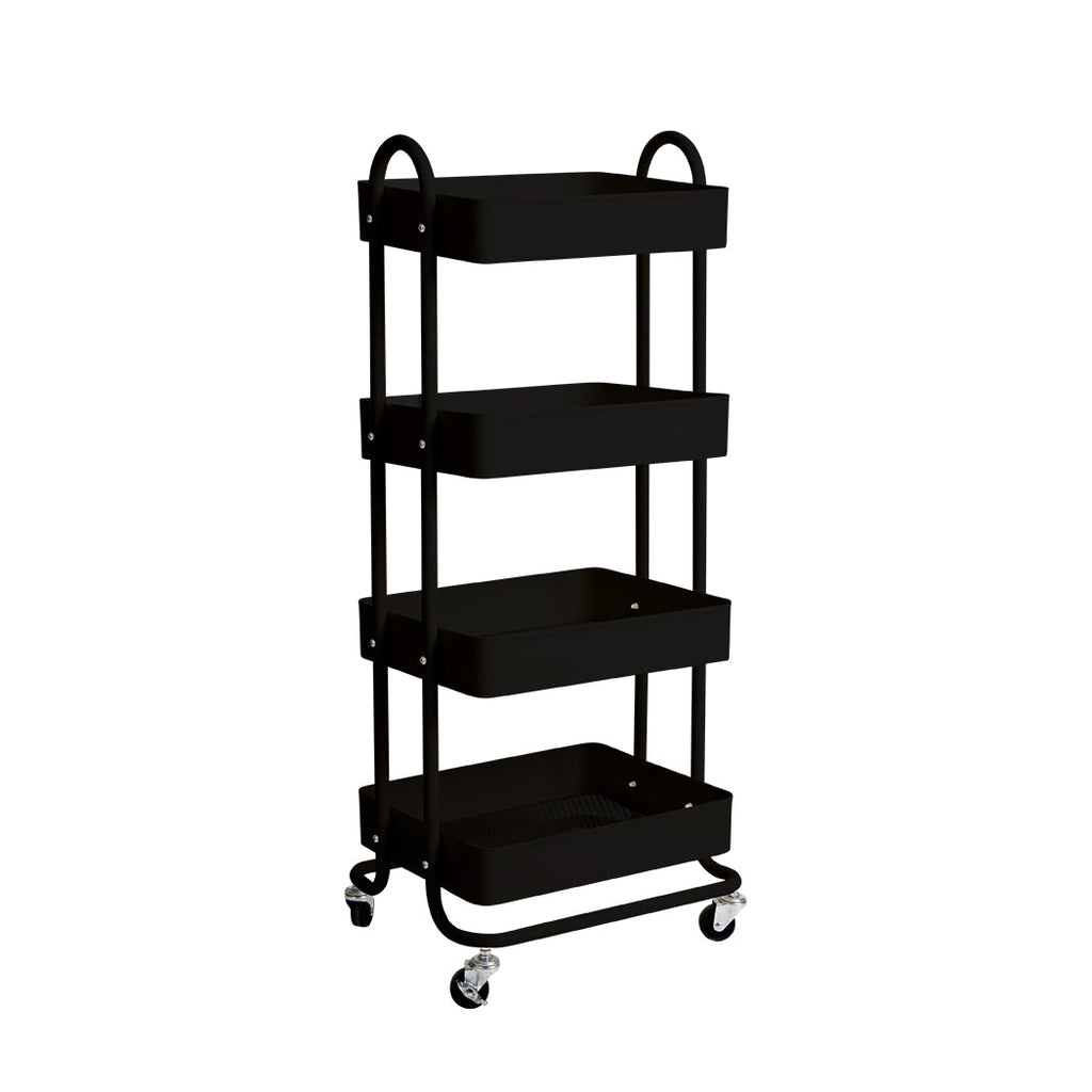 Levede 4 Tier Kitchen Trolley Cart Black Rolling Storage Organizer For Home Office Kitchen Carts