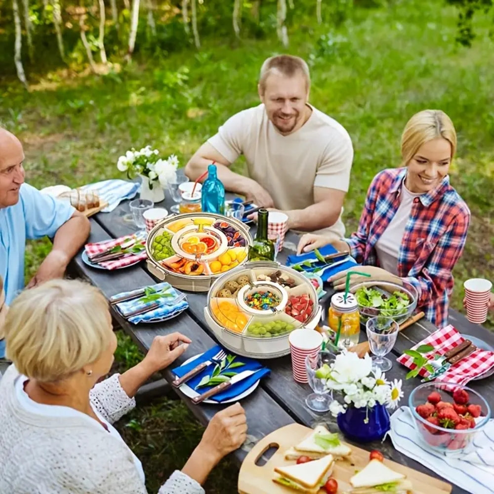 6 Compartments Rotating Fruit Tray With Lid And Handle Trays