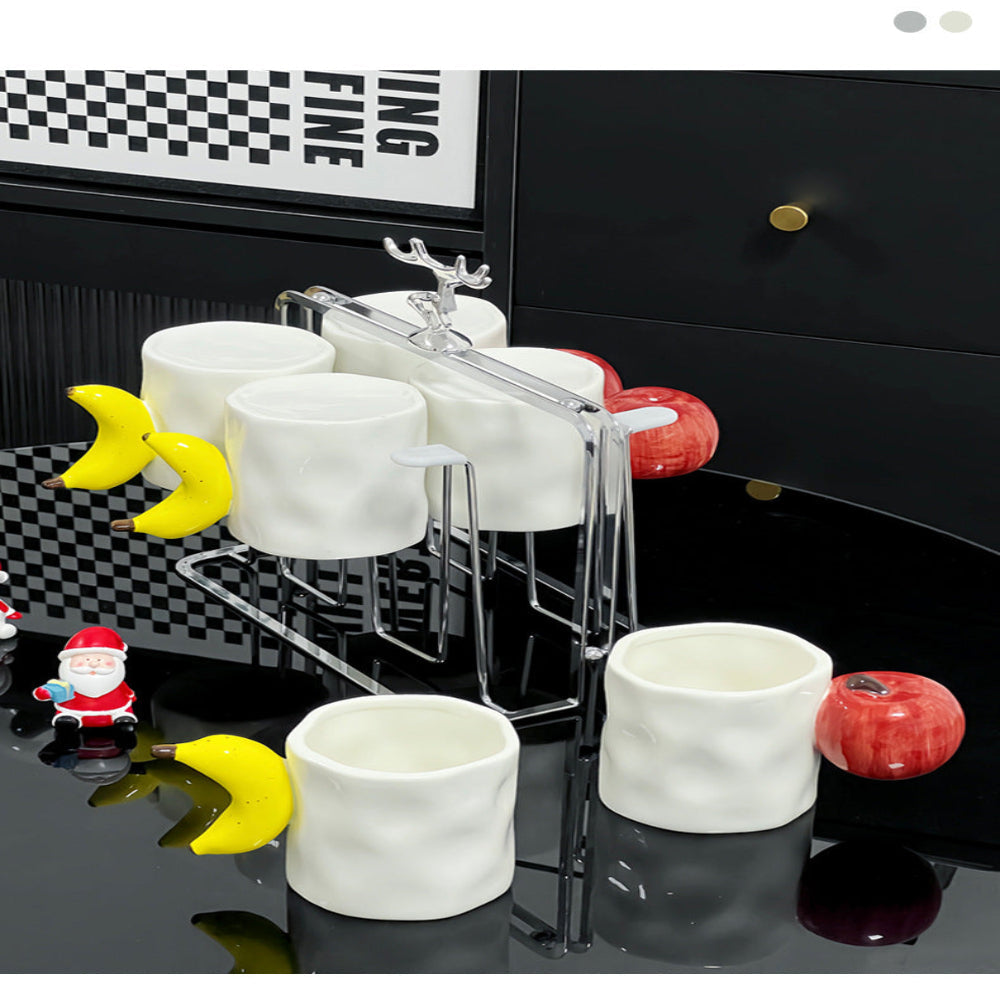Creative Fruit Ceramic Mug Unique Apple And Banana Handle Design