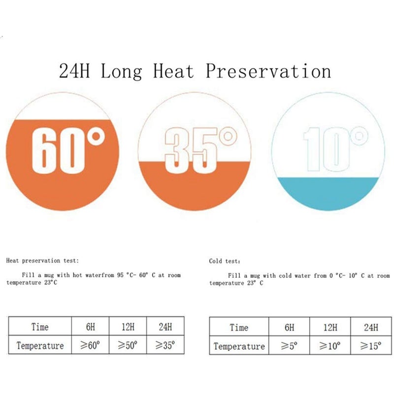 - Double-Walled Vacuum Insulated -- Food Grade 18/12 (316) Stainless Steel On Both Inside And Outside Walls 100% Bpa Free No Metallic Taste Or Odd Taste.Vacuum Insulation Creates An Airless Space Between Two WallsMake It Have Better Heat Preservation PerformanceWill Keep Your Drink Hot For 12 Hours Or Cold For 24 Hours