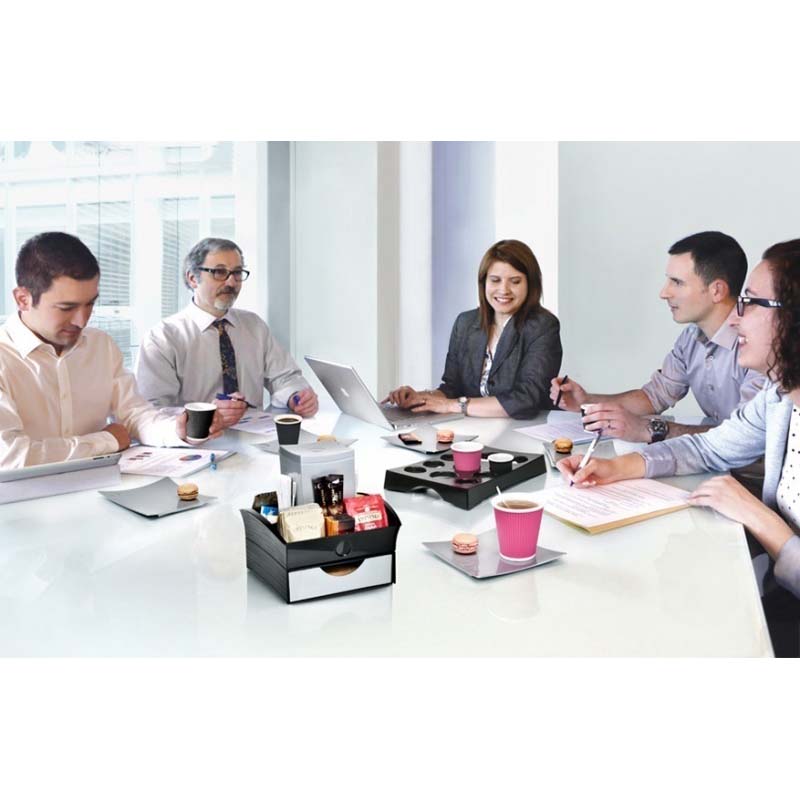 This Tray Will Offer Everyone A Varied Assortment Of Tea / Coffee / Chocolate Milk Pods Sugar Stirrers And Spoons.