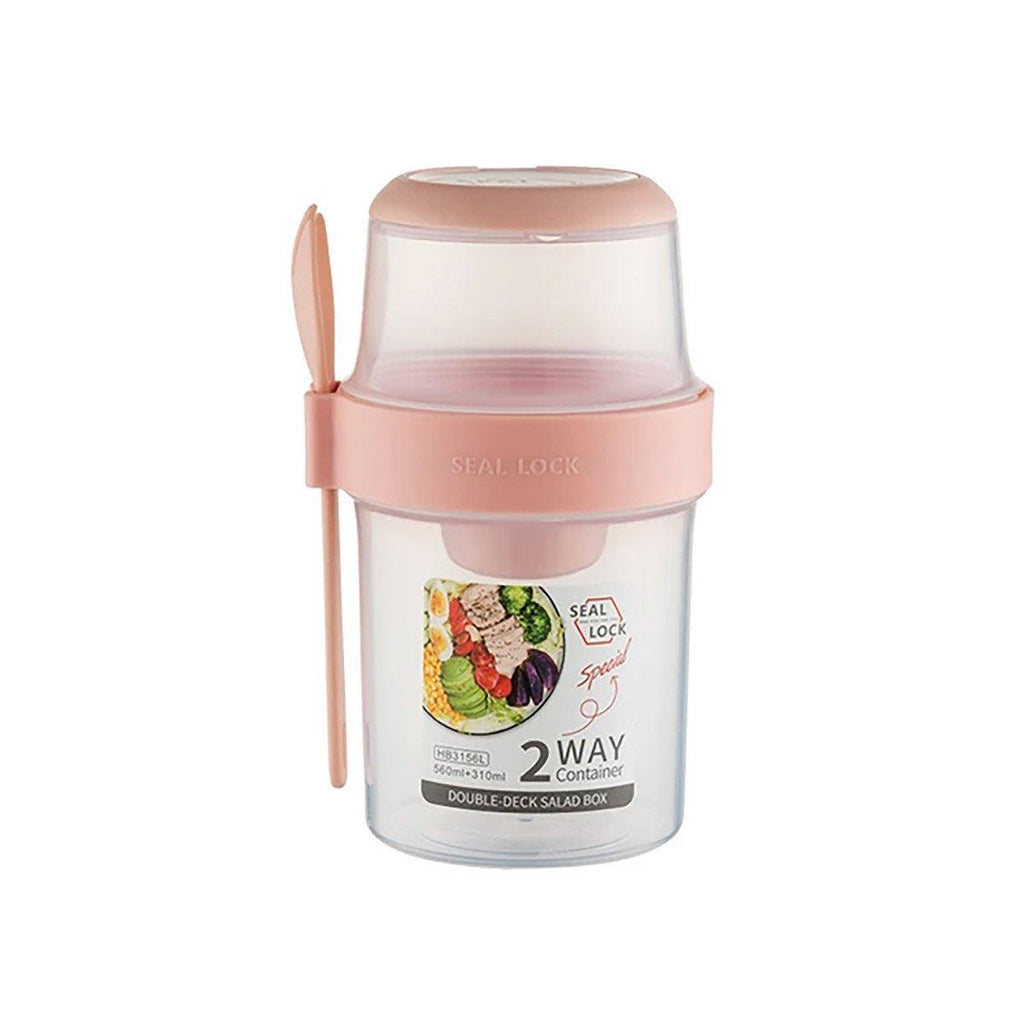 Introducing Our Double Plastic Salad Cup Perfect For The Modern Health-Conscious Individual On The Go. Its Smart Dual-Compartment Design Keeps Ingredients Fresh And Separate Until You're Ready To Mix Them. Made From High-Quality Bpa-Free Plastic This Cup Is Durable Safe And Ideal For Preparing A Healthy Breakfast Light Lunch Or Nutritious Snack.