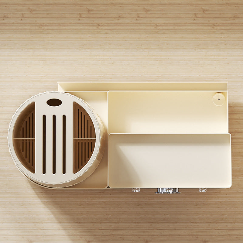 All In One Kitchen Countertop Organizer | Rotating Utensil Holder Knife Block & Spice Rack With Drawer Cream White Knife Blocks & Storage