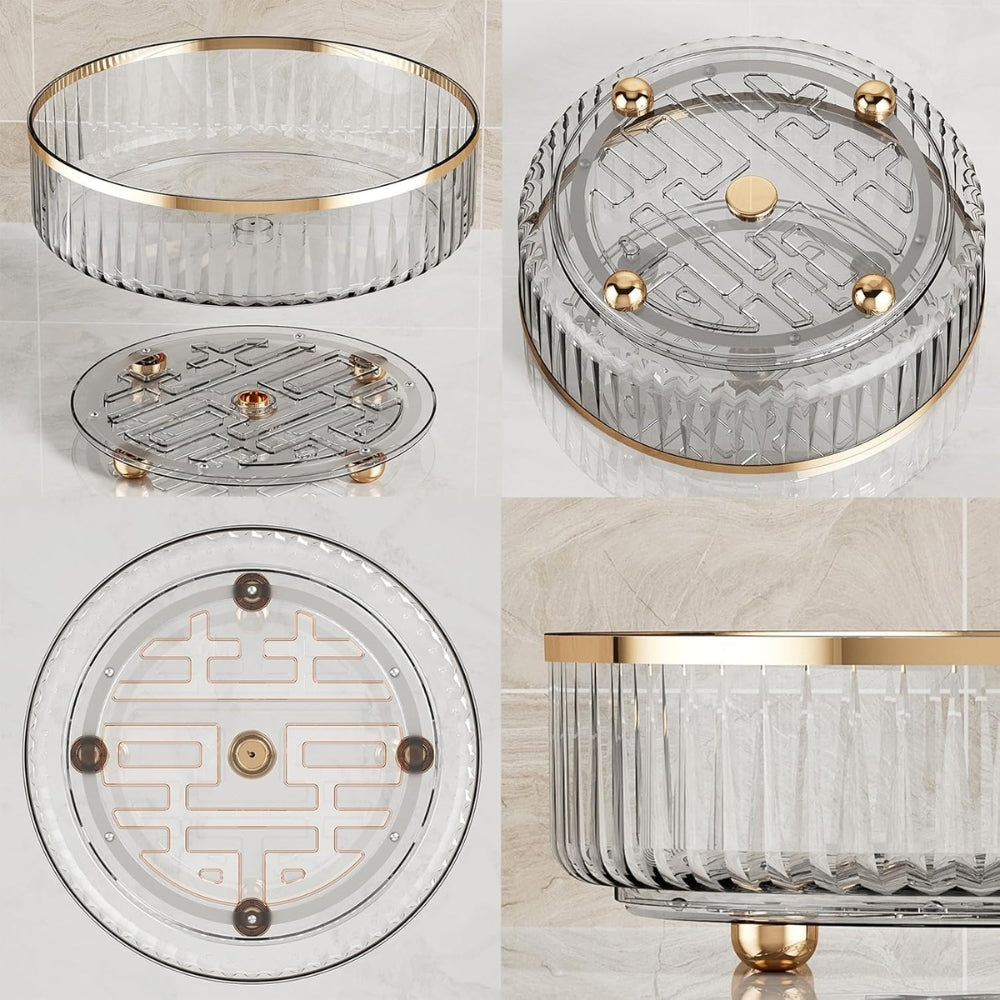 Beyond The Kitchen This Bin Serves As A Multifunctional Storage Solution Throughout Your Home. Whether On A Dressing Table Bathroom Sink Or Countertop The 360° Rotating Turntable Provides Convenient Access To All Your Items. It’S Perfect For Organizing Spices Condiments Cosmetics And Other Small Essentials Helping To Eliminate Clutter And Save Space. The Sleek And Clear Design Seamlessly Integrates With Any Decor Style Enhancing The Aesthetic Of Your Space.