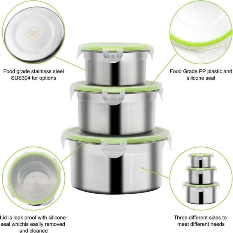 3 Piece Stainless Steel Food Storage Set With Leak Proof Lids Food Storage Containers