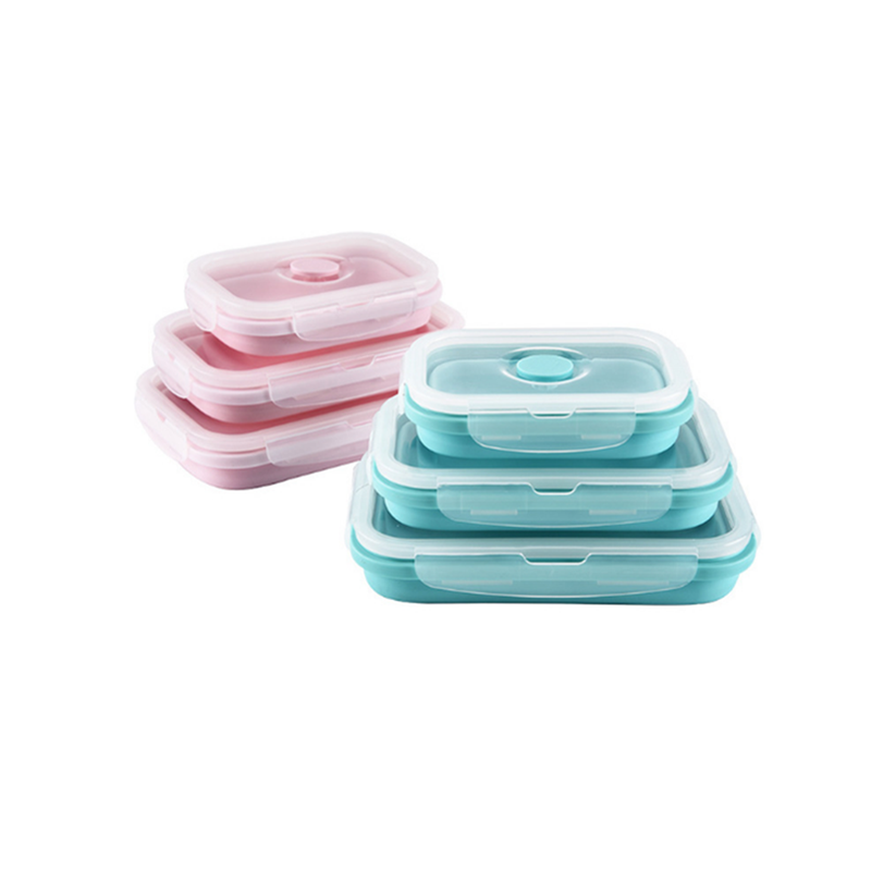 Square Silicone Folding Lunch Box Storage Sets Pink Lunchboxes