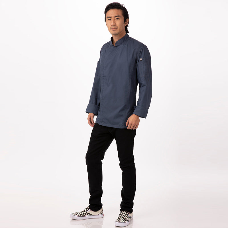 Hartford Men's Blue Zipper Chef Jacket By Works Chef Coats & Jackets