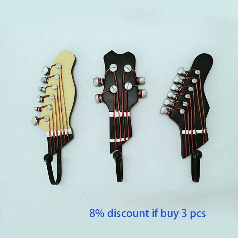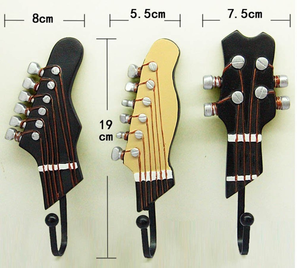 3 Pcs / Set Guitar Head Resin Hooks Clothes Hat Keys Hanger Wall Mounted Living Room Storage Rack Music Ornaments Hooks & Hangers