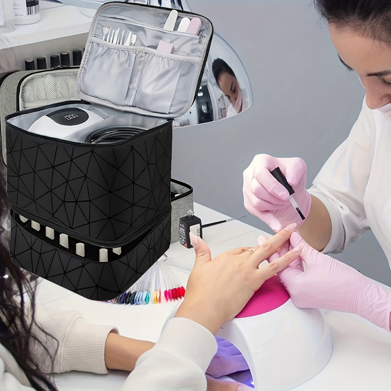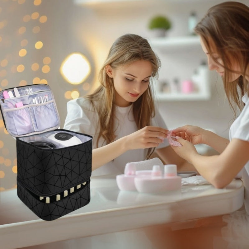 Nylon Organizer Handbag Has A Large Double Layer Nail Polish And Uv Finishing Space To Keep The Nail Kit Clean And Orderly So That You Can Easily Get What You Want Without Disturbing Other Nail Accessories.