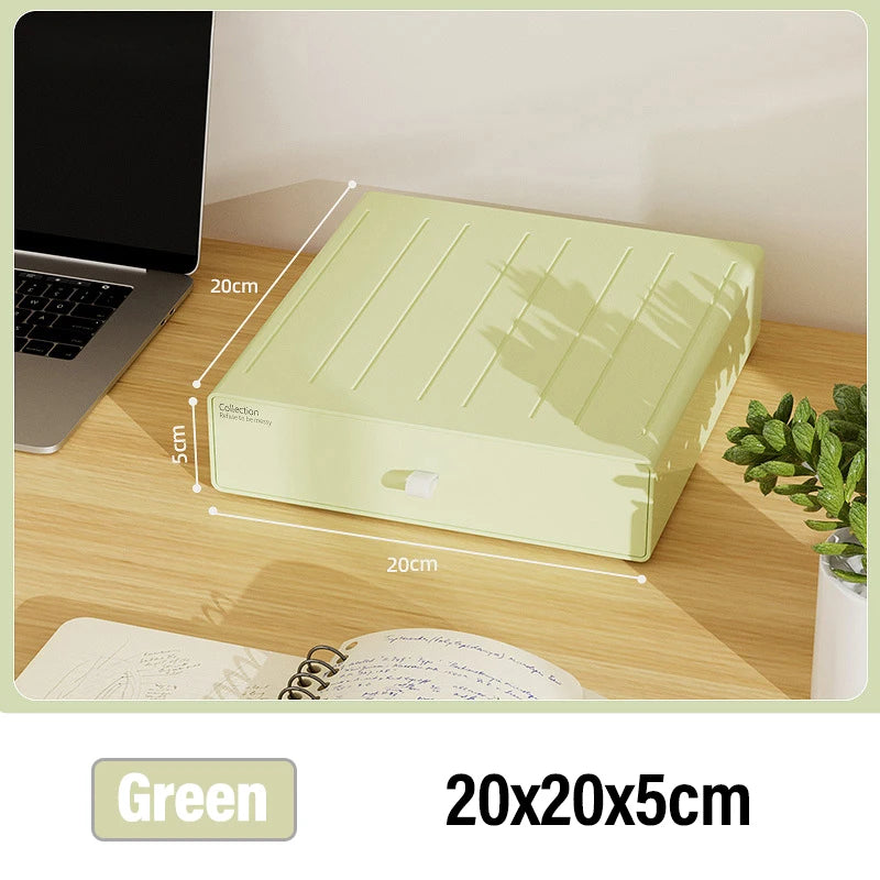 - 1 X Storage Box Green 20X20x5cm Desktop Stackable Box Drawer Type Home Office Organizer