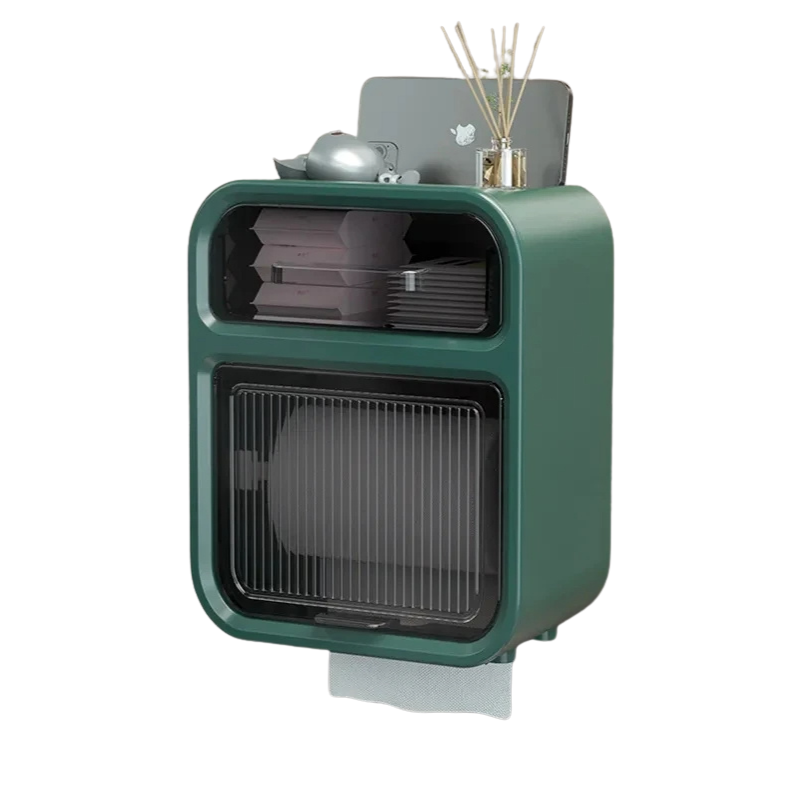 Storage Box Green Bathroom Toilet Paper Holder Waterproof Wall Mounted Towel Shelf Multifunctional Organizer Storage Boxes