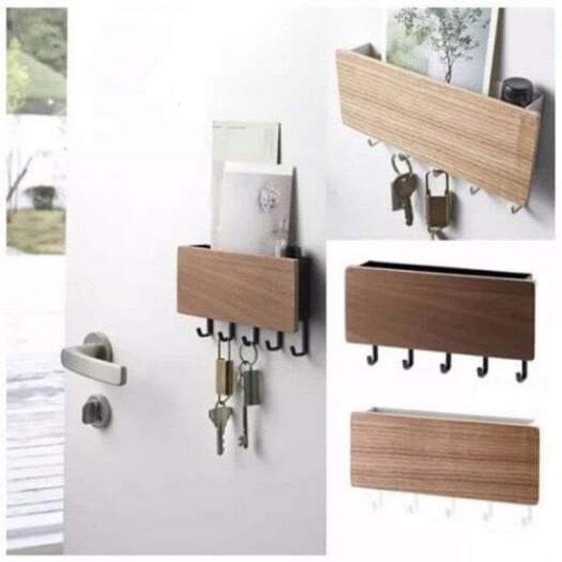 Japanese Style Wood Key Storage Wall Hook Prateleira Engredada Organizer Shelf Deep Brown Hooks & Hangers