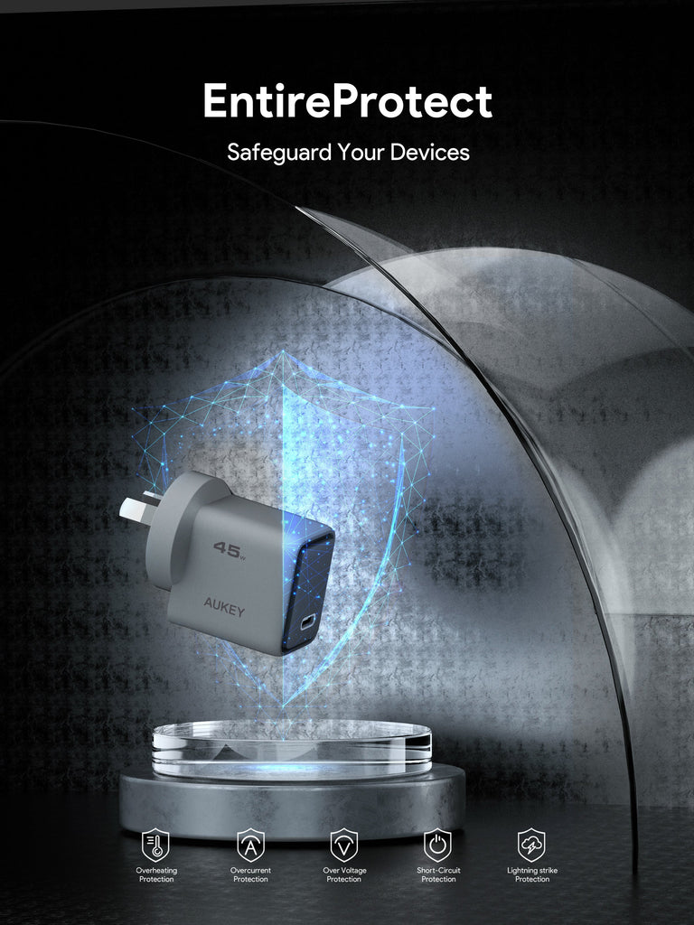 Aukey Comet 45W Pd Fast Wall Charger Gan Usb (Pa C2) Cables & Adapters