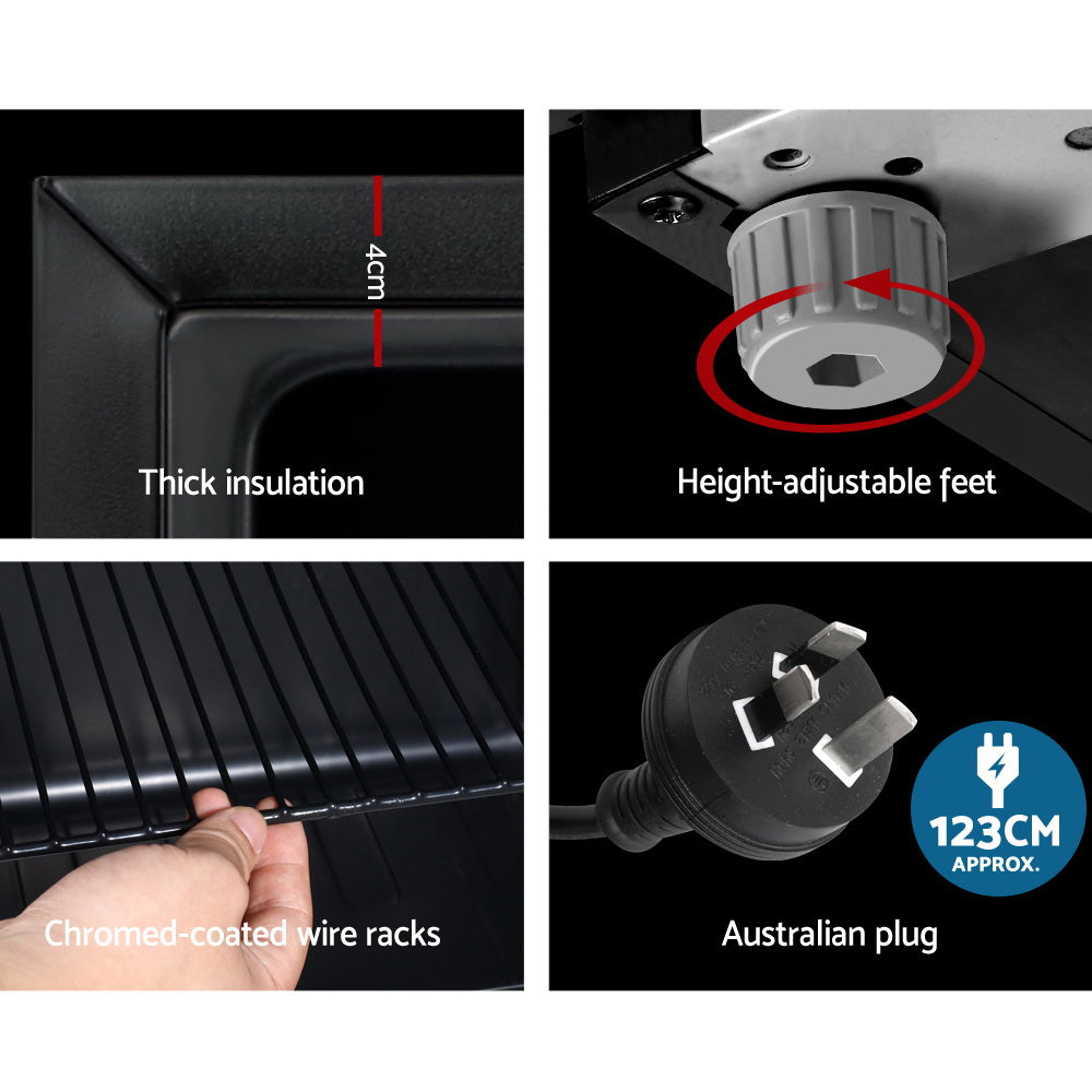Our Devanti Bar Fridge Is Great For Keeping A Variety Of Food And Beverages Chilled And Cooled Without Taking Up Too Much Space. Designed With Seven Temperature Settings The Energy-Efficient Bar Fridge Lets You Set Your Desired Coolness And Freshness. Other Great Features Include Shelves Double-Glazed Door Height- Feet Built-In Handle And Consistent Refrigeration To Name A Few. The Compact Bar Fridge Is Also Totally Eco-Friendly With Its R600a Freon-Free Refrigerant And Well-Made For Robust Use Such As The Extra Thick Insulation And A Built-In Led Lamp To Ensure Operation Is Smooth Quiet And Hassle-Free. The Fridge Also Comes With A Built-In Lock To Keep The Contents Safe And Secure Especially Useful In A Retail Environment After You Close For The Night. Suitable For Both Domestic And Commercial Use The Devanti Bar Fridge Is A Cool Investment Time And Again.