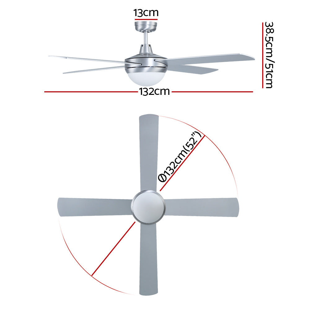 Devanti 52'' Ceiling Fan Ac Motor W/Light W/Remote Silver Ceiling Fans