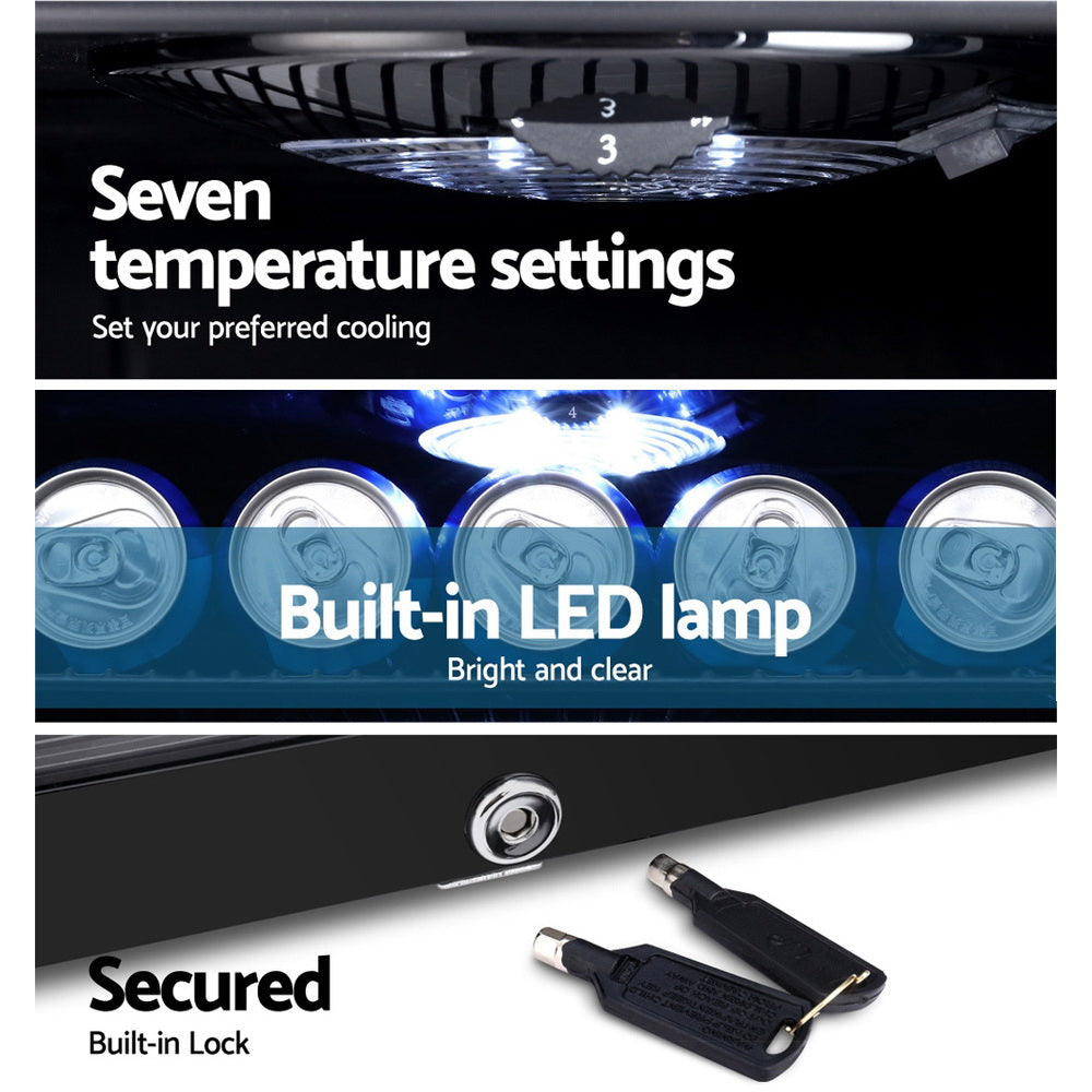 Devanti 98L Bar Fridge Glass Door Mini Fridges Freezer Black Wine Fridges
