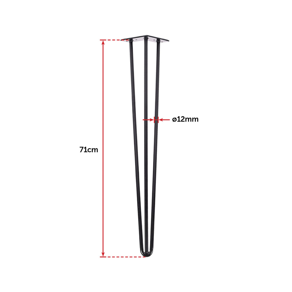 P>Crafted In Corrosion-Resistant Steel These Elegant Table Legs Are As Strong As They Are Beautiful. Though You're Not Likely To Put It To The Test These Legs Can Hold Weights Up To 150Kg. Done In Neutral Black Satin These Legs Will Look Great With Any Colour Table And Blend In Seamlessly With Your Other Home Furnishings.P>If You Love Streamlined Elegance Don't Miss Out On These Lovely Table Legs For Your Next Project. Purchase Yours TodayP>Features And Specifications:Ul>Li>Quantity: 4Li>Length: 710MmLi>Diameter: 12MmLi>Material: Heavy-Duty Cold-Rolled IronLi>Colour: BlackLi>Finish: SatinLi>Weight Capacity: 150KgLi>Style: Hairpin 3-Rod Mid-Century ModernLi>Corrosion-ResistantLi>Extremely Sturdy And StableLi>4 Predrilled Holes On The Mounting Plate For Convenience And StabilityLi>Screws Included/Ul>