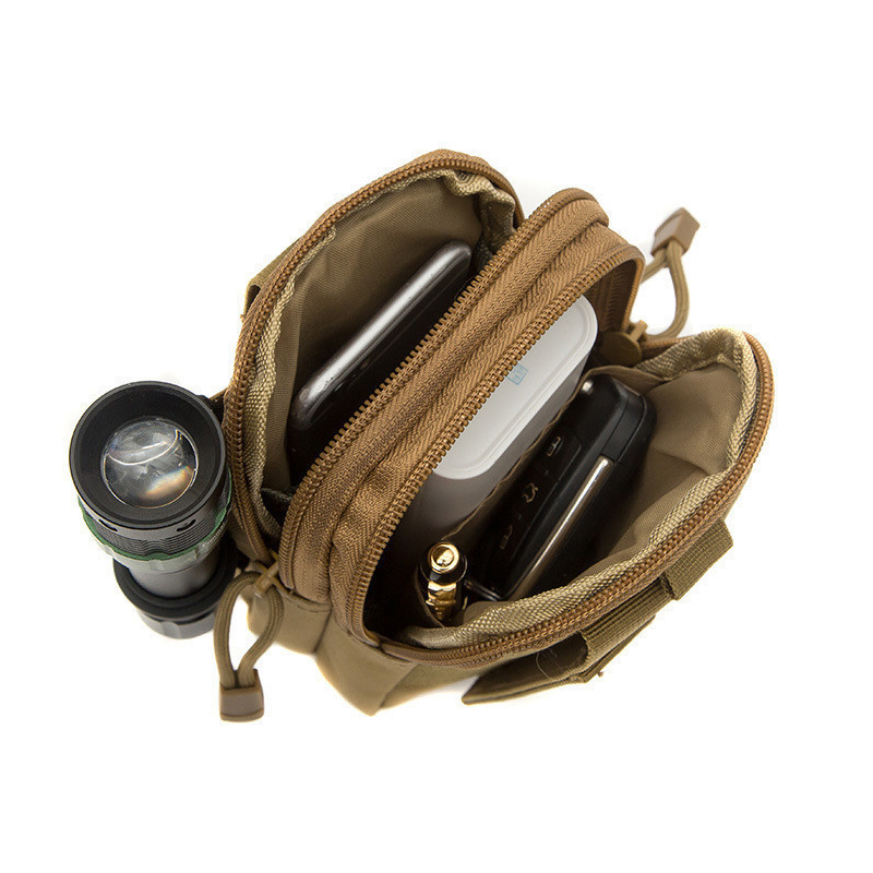 -Constructed By 1000D Waterproof Nylon Which Is Light Weight And Durable. -Can Be Attached To A Backpack Or A Belt And Therefore Fits Snugly To Your Trouser's Waist. -Multi Pockets Inside With A Large Capacity And Many Things Can Be Put In. -Can Carry Mobiles Pens Cigarettes Wallets Carabineers And Other Camping Items. -Great For Outdoors Tactical Sports Hiking Climbing Use And Etc.