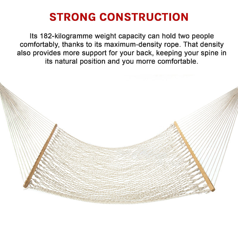 With A Generously Sized 2.08M Bed And A Sturdy 182Kg Weight Capacity This Hammock Comfortably Fits Two People—Perfect For Couples Or Anyone Who Just Loves A Little Extra Room. The High-Density Rope Not Only Supports Your Body Ergonomically But Also Delivers A Cool Breathable Surface For Those Lazy Summer Days. Complete With Hanging Hardware Setup Is Quick And Easy So You Can Dive Right Into Your Retreat.