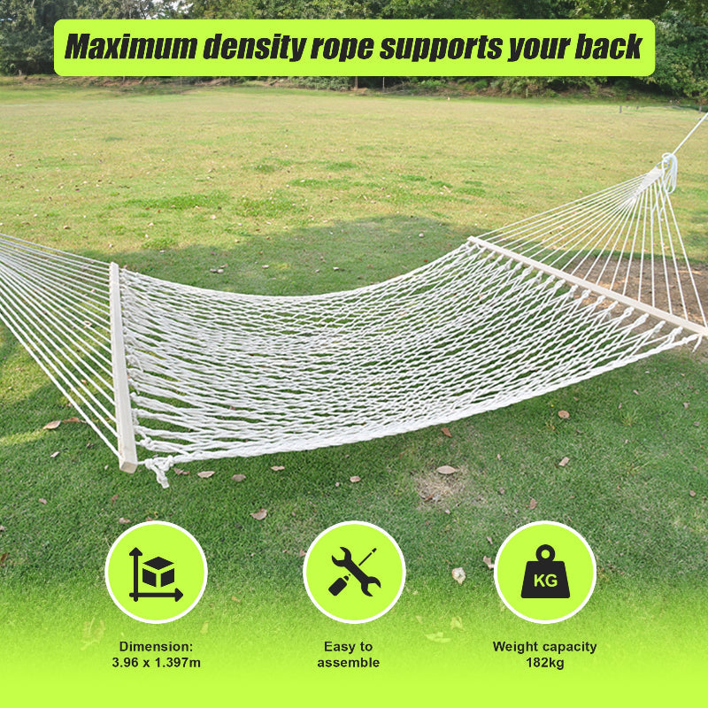 Transform Your Outdoor Space Into A Relaxing Paradise With This Luxurious 4M Traditional Cotton Rope Hammock. Whether You're Basking In The Sun With Your Favourite Book Or Enjoying A Peaceful Nap This Beautifully Crafted Hammock Offers Unbeatable Comfort And Style. Designed For Ultimate Relaxation Its Soft Natural Cotton And Durable Construction Make It A Must-Have For Every Backyard Patio Or Garden Hideaway.