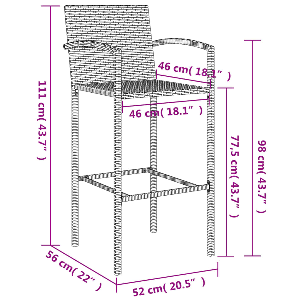 This Trendy Garden Bar Set Combining Both Style And Function Is Surely Meant To Be The Centrepiece Of Your Garden Patio And Any Other Living Space. Weather-Resistant Material: Pe Rattan Also Known As Poly Rattan Is Weather Resistant And Easy To Clean. It Remains Beautiful On The Outside For A Long Period Of Time. It Offers Great Quality Convenience And An Aesthetic Look. Comfortable Seating: The Bar Stool Is Designed With Armrests A Backrest And A Built-In Footrest To Offer You A Comfortable Seating Experience. Tempered Glass Tabletop: The Tabletop Is Made Of Tempered Glass Making It Easy To Clean. Additionally It Offers Excellent Support For Holding Your Drinks Snacks And Your Favourite Decorations. Sturdy And Stable Frame: The Powder-Coated Steel Frames Make The Pub Set Sturdy And Stable For Daily Outdoor Use. Wide Applications: The Bar Table And Stool With Their Remarkable Design Create A Pleasant Overall Appearance That Integrates Effortlessly Into Any Environment. Good To Know: To Make Assembly As Easy As Possible Each Product Is Delivered With A Manual. Note: To Ensure Your Outdoor Furniture Stays Beautiful We Recommend Protecting It With A Waterproof Cover.