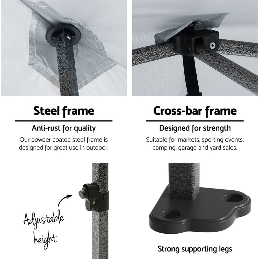 Featured With A Variety Of Ground And Canopy Coverage And Door And Panel Permutations Our Instahut Canopy Lets You Choose The Configuration You Require To Meet Your Need. All Panels Are Removable And Can Be Adjusted For Different Positions. The Sturdy Powder-Coated Steel Legs And Struts Keep The Entire Structure Steady And Firm In All Weather Conditions Whilst The Canopy Is Both Uv And Water-Resistant. The Interior Is Spacious And The Openings Provide Ample Ventilation To Let Occupants Stay Cool And Comfortable At All Times. Not Least All Components Are Easily Held Together With Convenient Heavy-Duty Zipped And hook-and-loop tape Attachments.