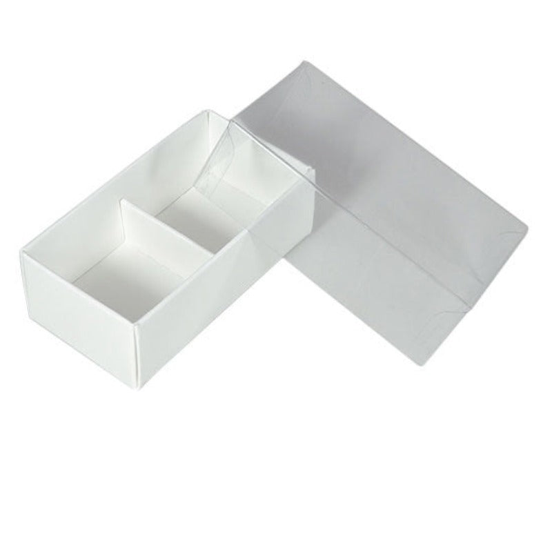 My Decorations 50 Pack Of White Card Chocolate Sweet Soap Product Reatail Gift Box 2 Bay Compartments Clear Slide On Lid 8X4x3cm Gift Boxes
