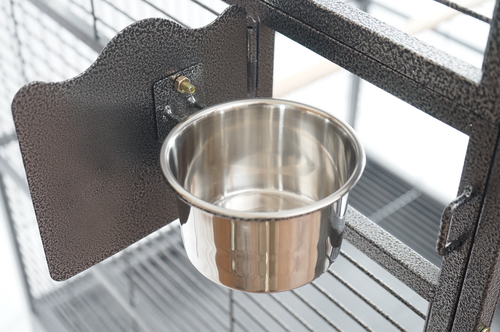 Taking care of them is made easy too with one large access door and fourside doors to reach inside fourfood and water bowls and take them out for refills or cleaning. Cleaning is hassle-free with the slide-out top and bottom tray that can also be removed. And your feather friends will feel extremely safe too with a set of secured locks to keep prying predators away.