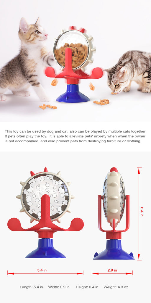 Li> Interactive Treat Dispensing: The Fun Ferris Wheel Design Encourages Your Pet To Spin The Toy With Their Paw Or Nose. As The Wheel Rotates Treats Will Randomly Drop From The Leak Holes Stimulating Their Natural Foraging Instincts And Making Playtime Rewarding. Li> Powerful Suction Cup Base: Featuring A Strong Suction Cup This Toy Can Be Securely Mounted On Any Smooth Surface Including Floors Doors Windows And Walls. It Can Be Attached Vertically Or Horizontally For Versatile Play Scenarios. Li> 360 Degree Rotation: The Main Body Of The Toy Can Rotate 360 Degrees On Its Base And The Wheel Itself Also Spins Independently. This Multi-Directional Movement Keeps Pets Guessing And Adds An Extra Layer Of Fun To The Challenge. Li> Boosts Iq And Reduces Anxiety: This Food Puzzle Challenges Your Pet's Mind Helping To Improve Their Intelligence. It Serves As An Excellent Distraction To Relieve Stress And Prevent Destructive Behavior When They Are Home Alone. Li> Safe And Durable Construction: Made From High-Quality Non-Toxic And Durable Abs And Tpr Materials This Toy Is Built To Withstand Enthusiastic Play. It Is Sturdy Wear-Resistant And Safe For Your Beloved Pets. Li> Simple To Use And Clean: Simply Remove The Soft Rubber Stopper At The Top To Easily Add Pet Food Or Treats. The Simple Structure Also Allows For Easy Disassembly For Thorough Cleaning.