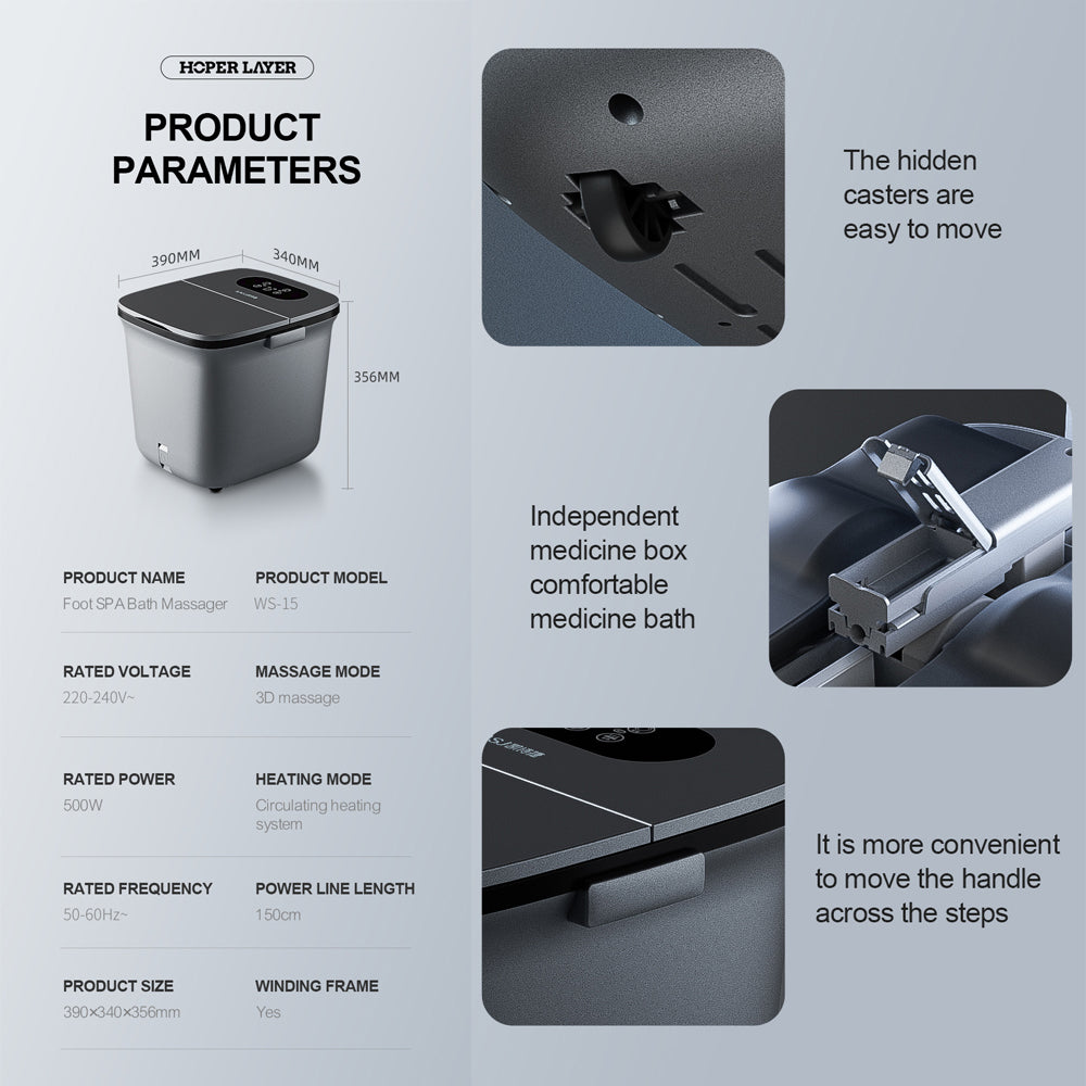 Hoper Layer Circulating Heating Foot Spa Bath Massager Dry And Wet Dual Use Ws 15 Massagers
