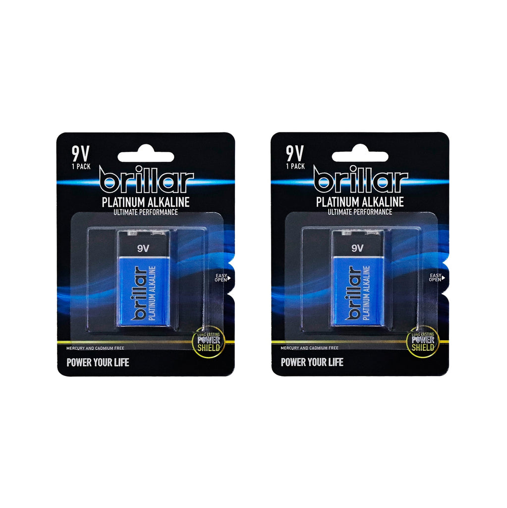 2 Pack Brillar 9V Platinum Alkaline Battery Single Use Batteries